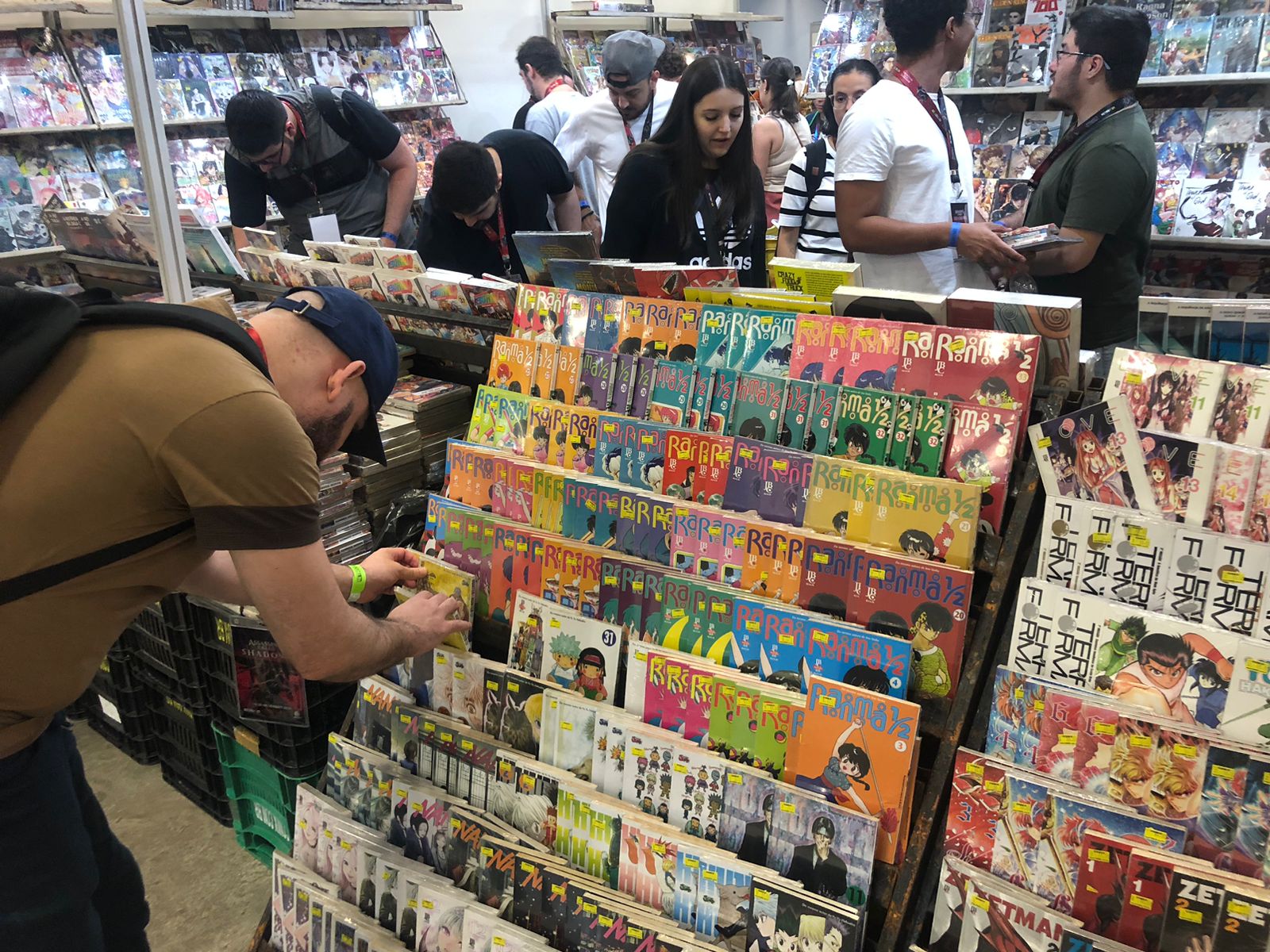Havia também muitas lojas vendendo videogames, jogos, camisetas, brindes e muito mais. Não somente ligados à cena de jogos, mas também à cultura pop em geral – eu mesmo comprei 4 volumes do HxH.