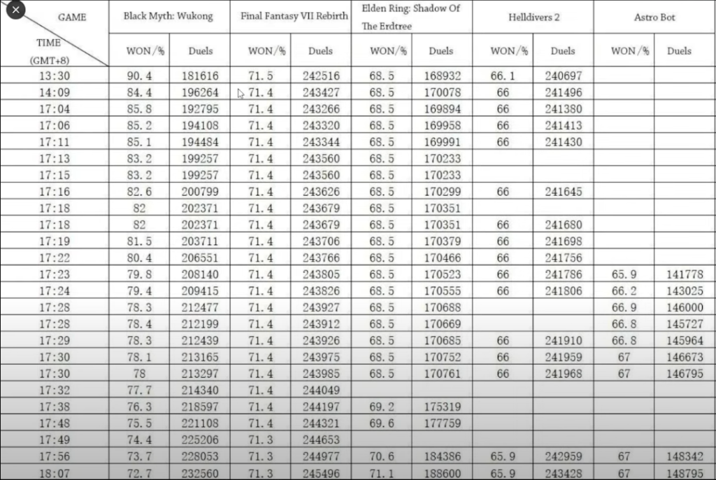 A queda repentina nas porcentagens deixou os fãs intrigados. Um usuário que monitorava a votação em tempo real compartilhou prints mostrando que, às 16:28, Black Myth: Wukong ainda tinha 90,4% dos votos, mas, cerca de uma hora depois, havia perdido mais de 15% de apoio, descendo para 74%. Alguns acreditam que uma possível votação negativa em massa foi orquestrada para reduzir a vantagem do jogo.