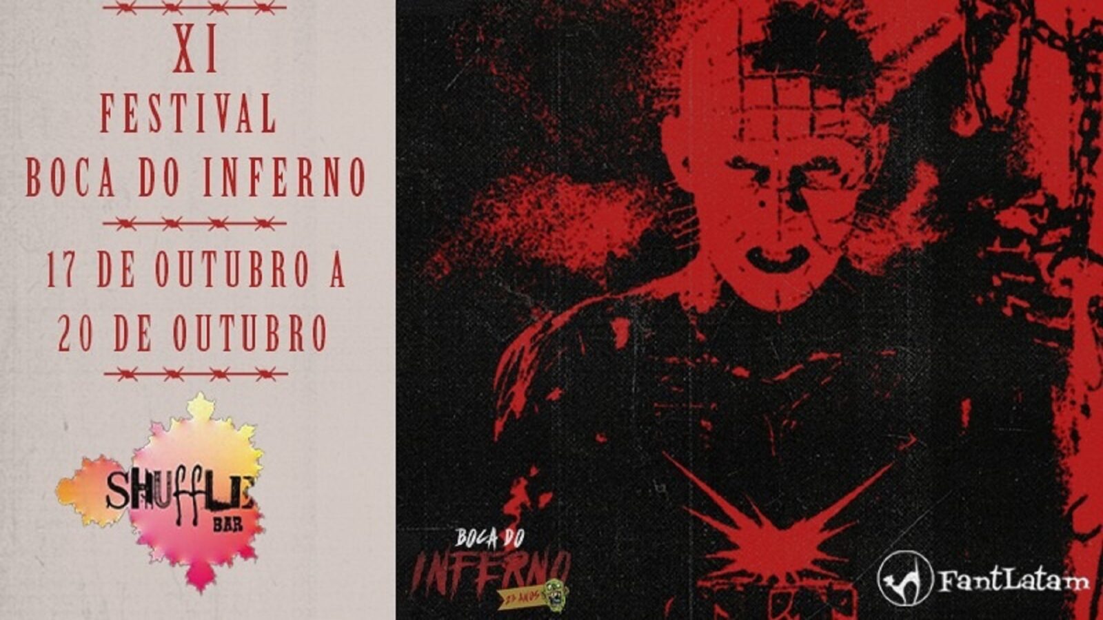 Festival Boca do Inferno São Paulo – Mais uma vez a cidade de São Paulo será palco do Festival Boca do Inferno, com a exibição de curtas-metragens das mostras de Horror, Suspense, Animação, Sci-fi, Diretoras, Terror e Fantasia, além de sorteios e exibição de curtas convidados. Realizado por um dos mais tradicionais portais de terror do país, o Boca do Inferno, o festival chega a sua 11ª edição, e será realizado este ano no Shuffle Bar, entre os dias 17 a 20 de outubro.